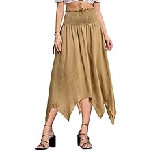Amazon Com Scarlet Darkness Women Renaissance Smocked High Waist Irregular A Line Flowy Maxi Skirt Khaki S Clothing Shoes Jewelry